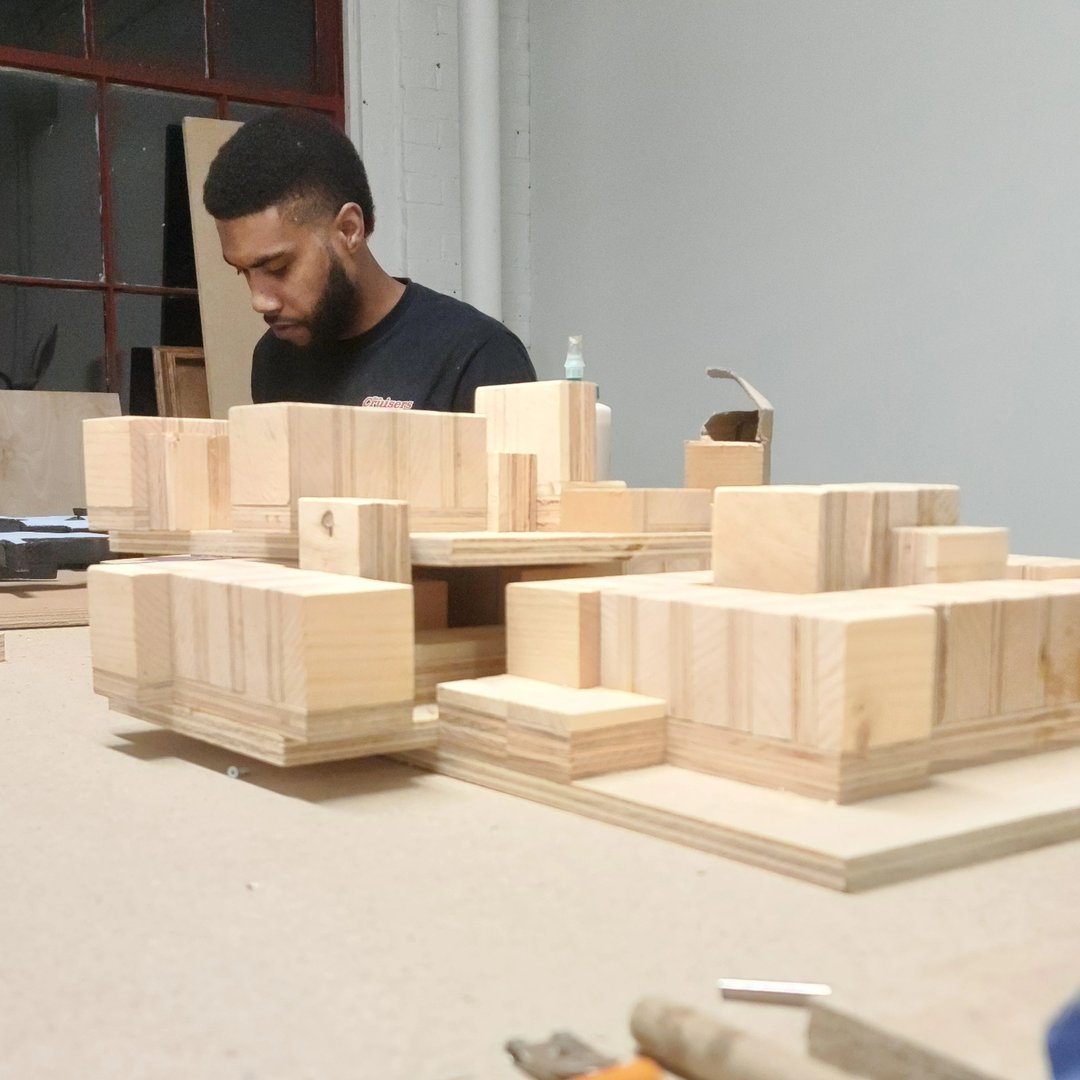 Comparing the process to music composition, my tape measure becomes the music sheet, power tools are my instruments, and all the cut pieces are different sounds composed together to create a structurally sound and colorful melodic look.